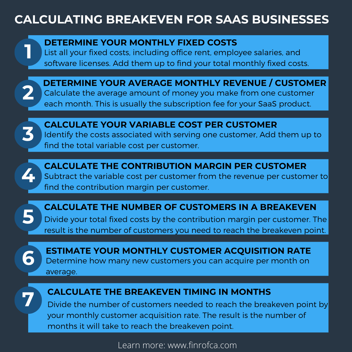 Now that we've discussed the basics and importance of the breakeven point let's walk through a step-by-step guide on calculating the breakeven timing for your SaaS business. By following these steps, you can determine when your business will cover its costs and generate profit.