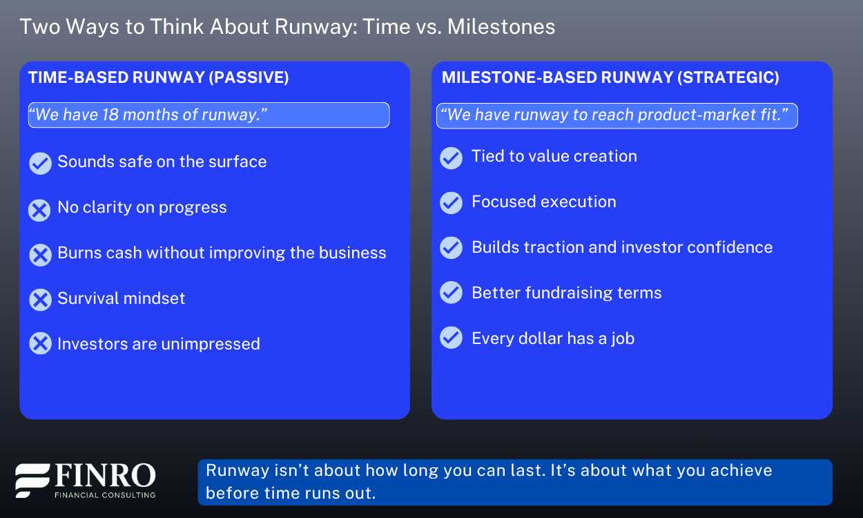 When runway is tied to milestones, every dollar has a purpose. You are not just buying time, you are buying momentum, leverage, and investor confidence. That is the difference between burning cash and building value.