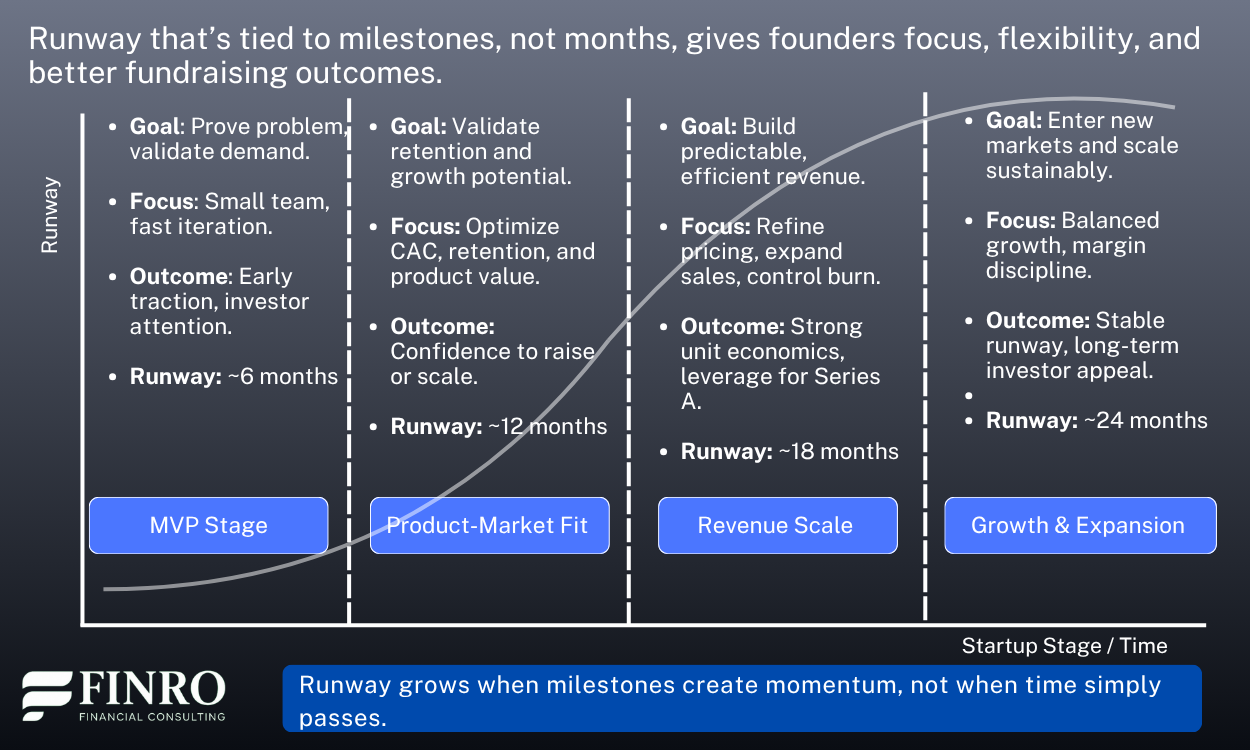 Milestones define meaningful runway. Runway tied to clear goals builds investor trust and ensures each dollar contributes to tangible business value.
